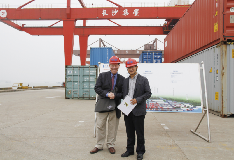 月18日上午,Andrew Wolf先生在外事辦人員和翻譯的陪同下來(lái)我港考察,湖南長(cháng)沙新港有限責任公司董事、副總經(jīng)理辛華負責接待。一行人考察了集星生產(chǎn)作業(yè)現場(chǎng),初步了解了碼頭設施設備情況,現場(chǎng)作業(yè)情況,重點(diǎn)了解了我港貨物情況、通關(guān)情況、湘江水位及有無(wú)美國進(jìn)口貨物等情況。辛華副總就Andrew Wolf先生的提問(wèn)予以專(zhuān)業(yè)性的解答并詢(xún)問(wèn)紐黑文市的基本情況。Andrew Wolf先生還為辛華副總準備了一本宣傳畫(huà)冊以示友好,交談現場(chǎng)格外輕松、愉快。碼頭參觀(guān)考察過(guò)后,一行人還參觀(guān)了金霞進(jìn)出口商品展示中心。