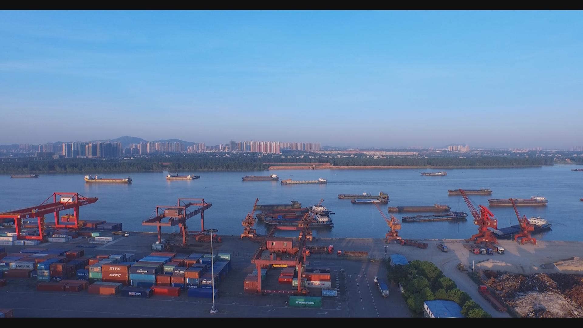 在岳陽(yáng)城陵磯港,記者劉媛源介紹說(shuō):“為了更好地利用湖南良好的水運資源,長(cháng)沙與岳陽(yáng)打出了一套漂亮的組合拳。我現在所在的位置就是岳陽(yáng)市的城陵磯新港,經(jīng)過(guò)不到一天的航行,那批從長(cháng)沙新港順流而下的貨物正在這里進(jìn)行新一輪的裝卸,這些貨物將乘坐我身后更加重量級的貨輪,從這里啟程運往海外。”