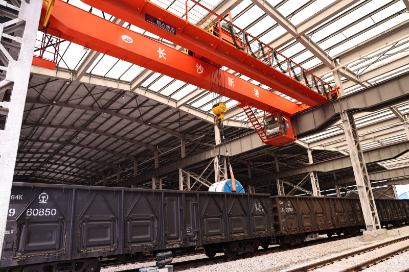 長(cháng)沙新港專(zhuān)用鐵路正在裝卸作業(yè)。 均為長(cháng)沙晚報全媒體記者 王志偉 通訊員 金添毅 攝 2月4日,一列由婁底漣鋼生產(chǎn)的工業(yè)鋼材共80車(chē)經(jīng)鐵路運輸至長(cháng)沙新港,從碼頭裝船發(fā)運至上海,當天運量達到4500噸。2023年,長(cháng)沙首條疏港專(zhuān)用鐵路在長(cháng)沙新港正式通車(chē)運營(yíng),實(shí)現了港口鐵路與京廣線(xiàn)國鐵干線(xiàn)的無(wú)縫銜接,打通了長(cháng)沙水鐵聯(lián)運“最后一公里”,多式聯(lián)運降低了企業(yè)運輸成本,深受市場(chǎng)歡迎。數據顯示,長(cháng)沙新港專(zhuān)用鐵路運營(yíng)至今,共到發(fā)車(chē)數超3.1萬(wàn)車(chē),貨物運量超186萬(wàn)噸。