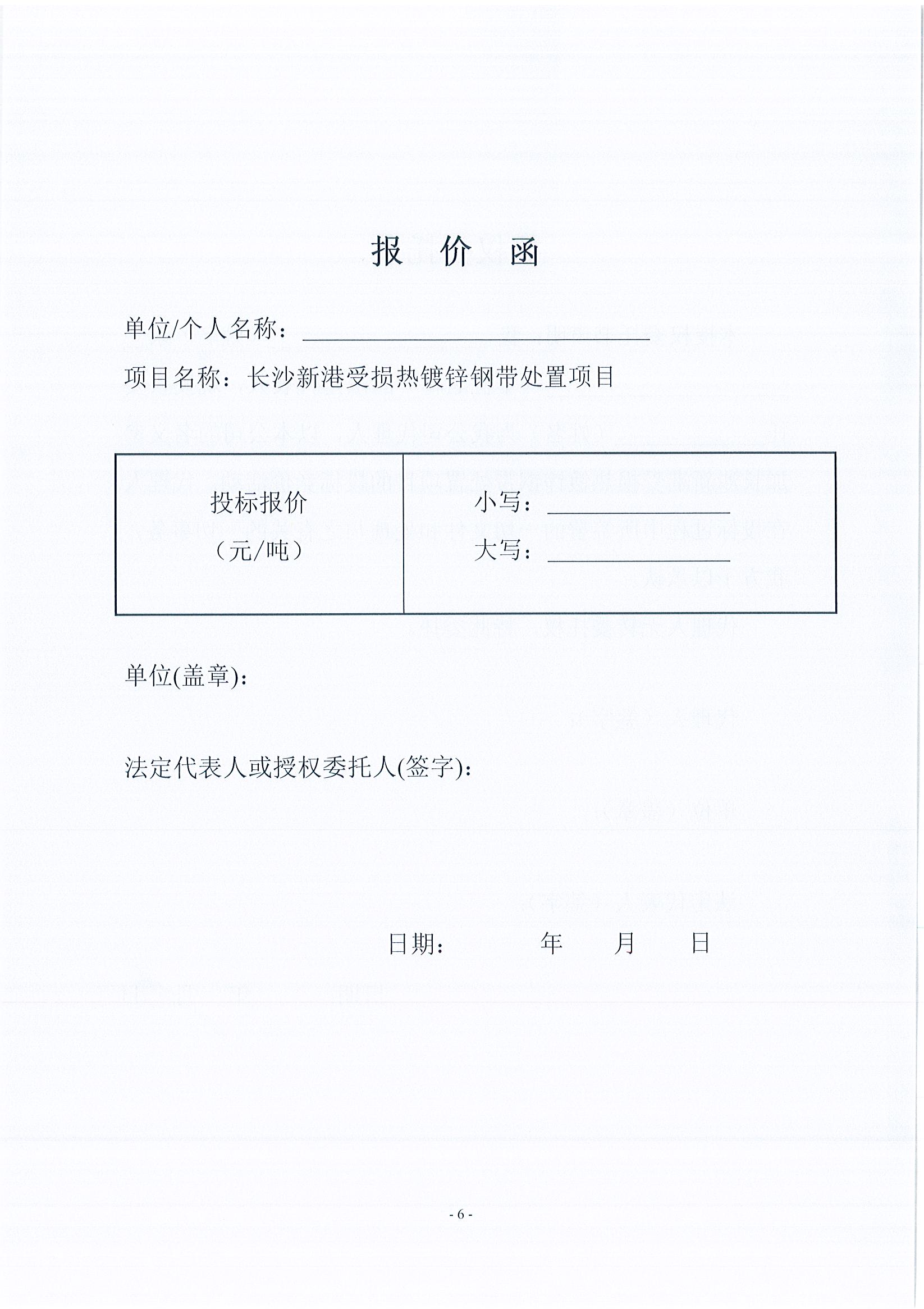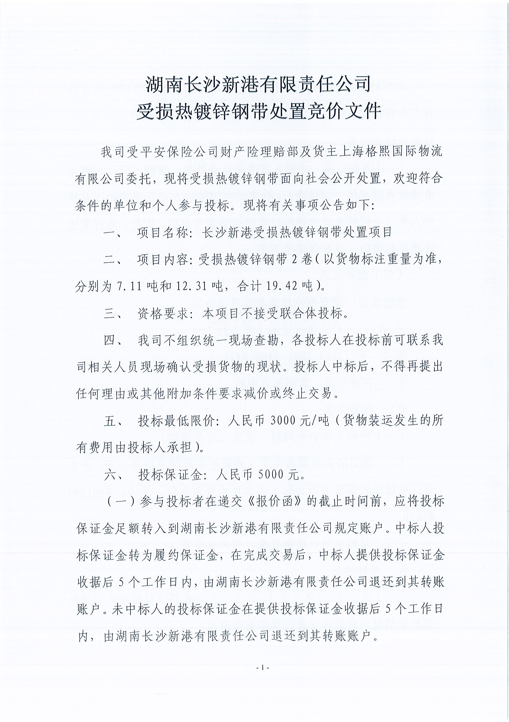 湖南長(cháng)沙新港有限責任公司受損熱鍍鋼帶外置競價(jià)文件