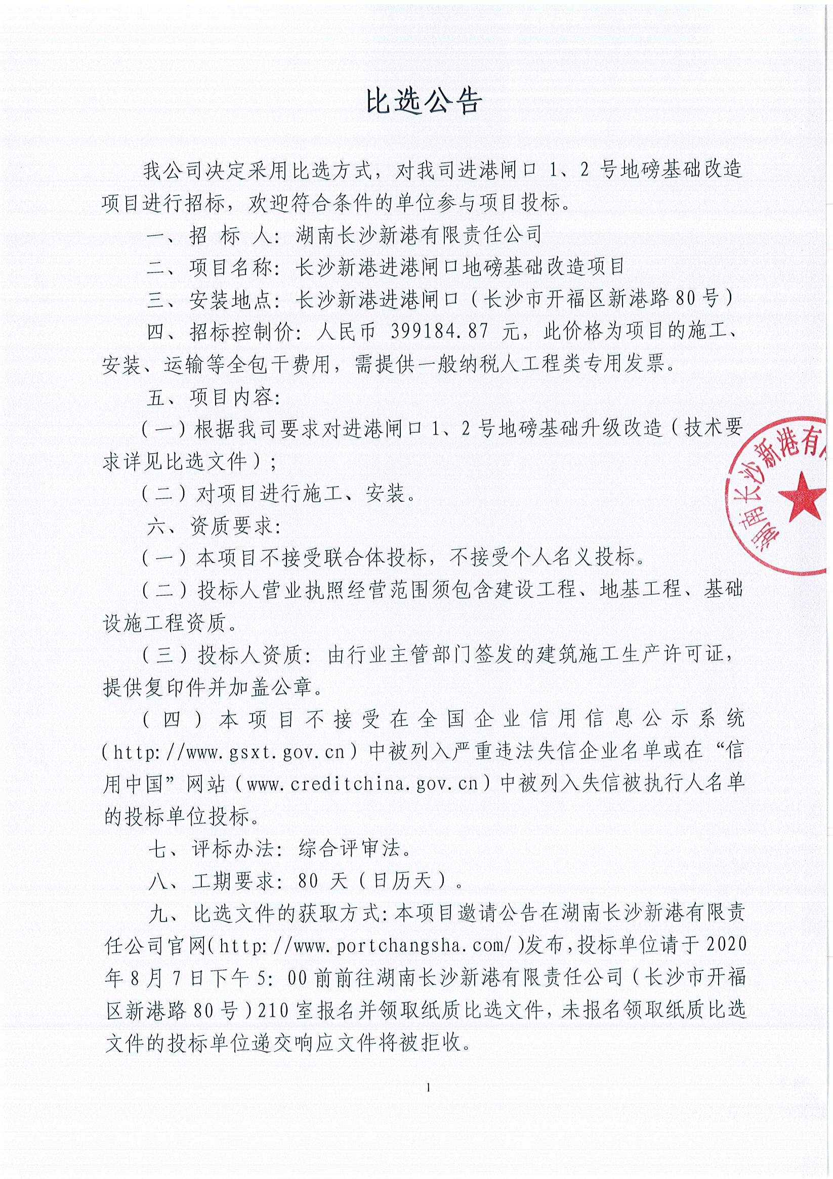 長(cháng)沙新港進(jìn)港閘口地磅基礎改造項目比選公告