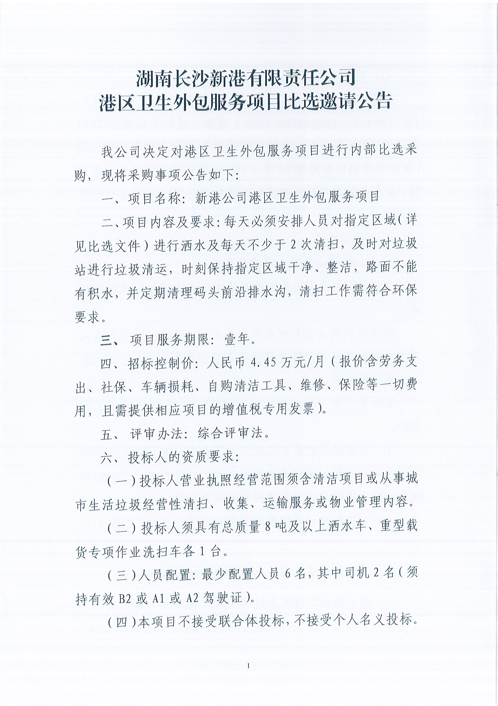 湖南長(cháng)沙新港有限責任公司港區衛生外包服務(wù)項目比選邀請公告
