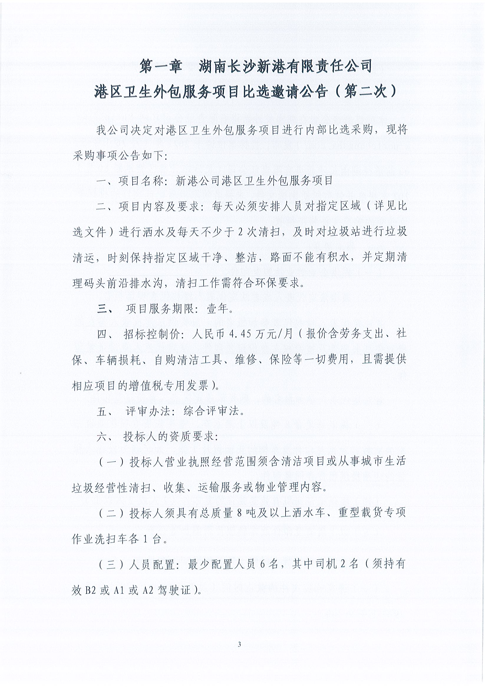 湖南長(cháng)沙新港有限責任公司港區衛生外包服務(wù)項目比選邀請公告(第二次))