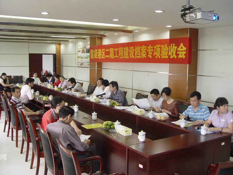 2010年6月7日,湖南省交通運輸廳副巡視員郭紫星、辦公室副主任周超,省檔案局副局長(cháng)胡振榮、業(yè)務(wù)處處長(cháng)白明標、業(yè)務(wù)處副處易小青,省交通建設質(zhì)量監督室主任周榮輝、基建處副處長(cháng)易儉一行,對霞凝新港二期工程建設檔案進(jìn)行專(zhuān)項驗收。