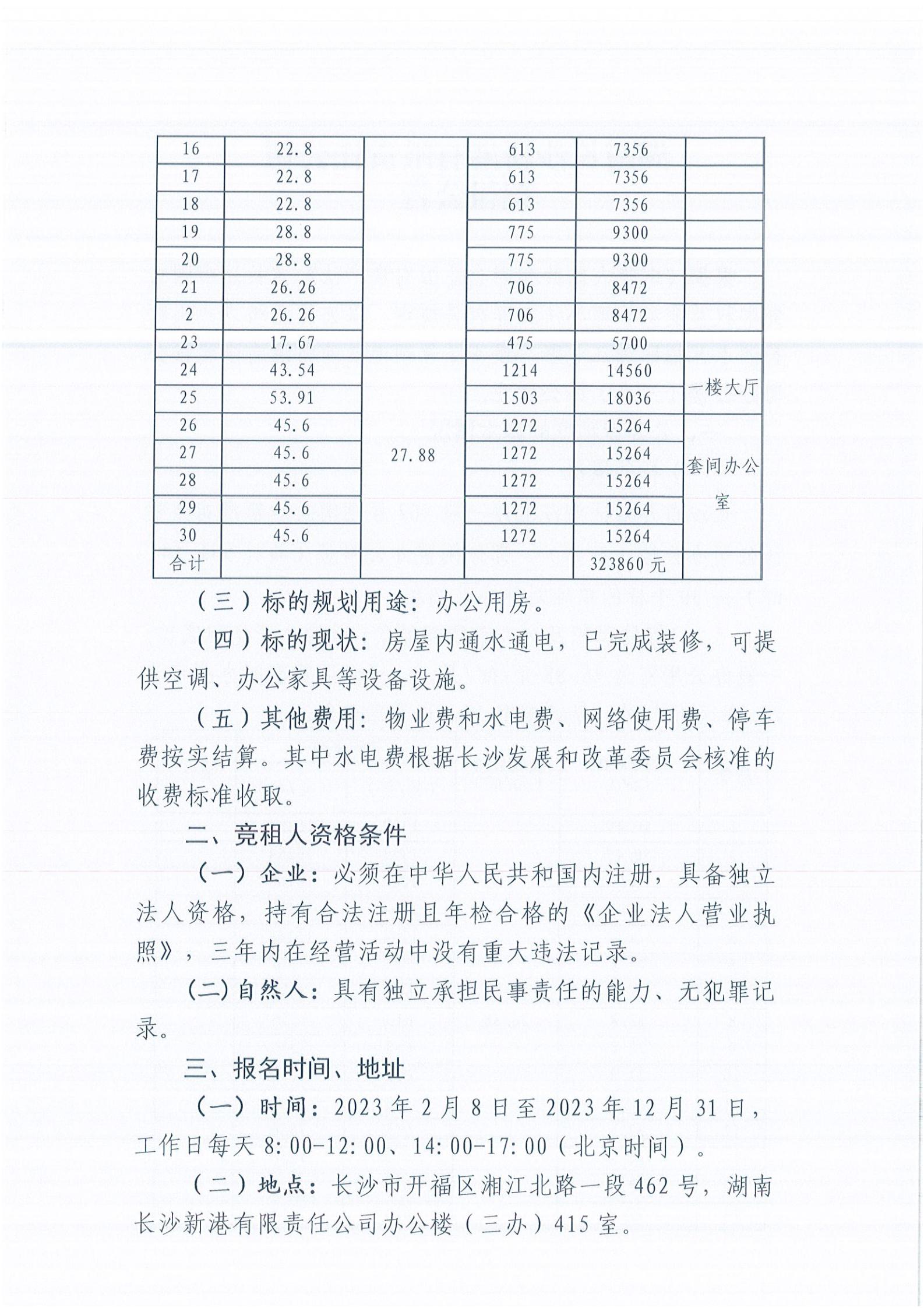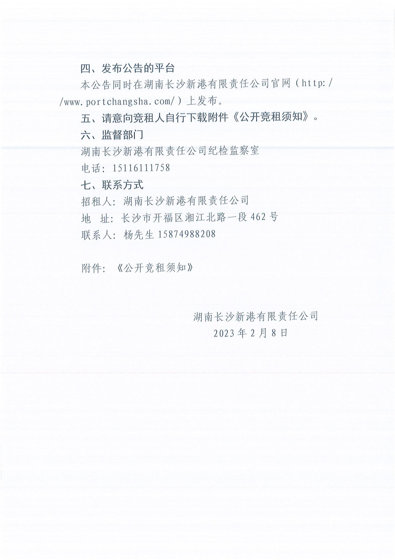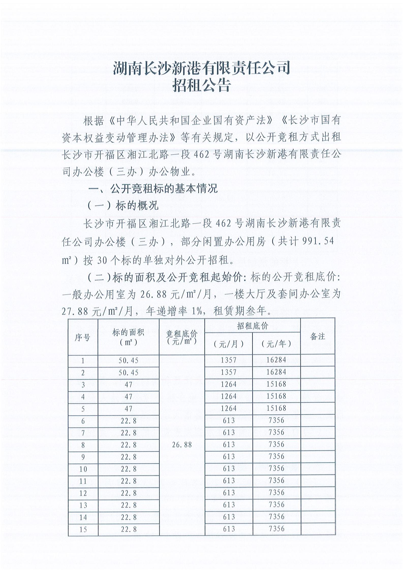 湖南長(cháng)沙新港有限責任公司招租公告