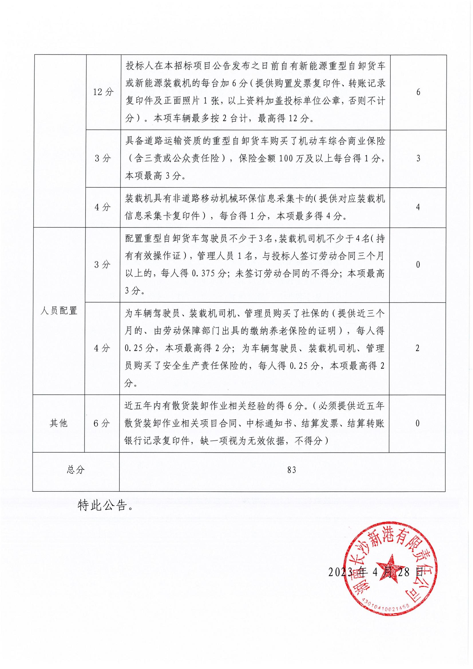 港區散貨裝卸作業(yè)外包項目中標結果公告