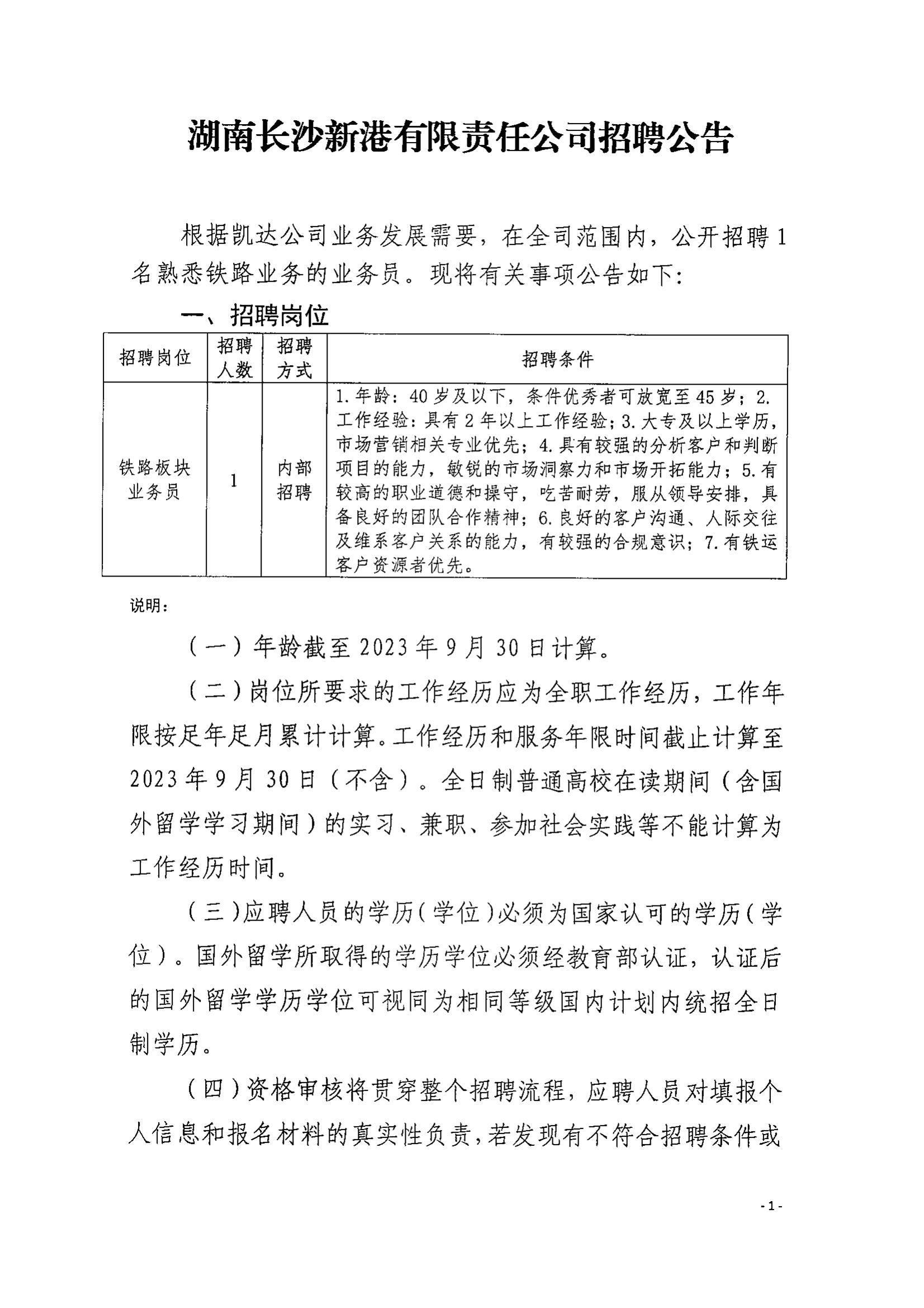 湖南長(cháng)沙新港有限責任公司招聘公告