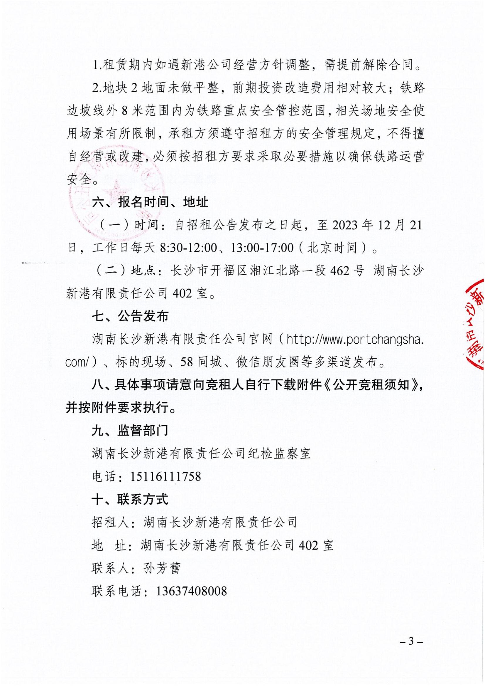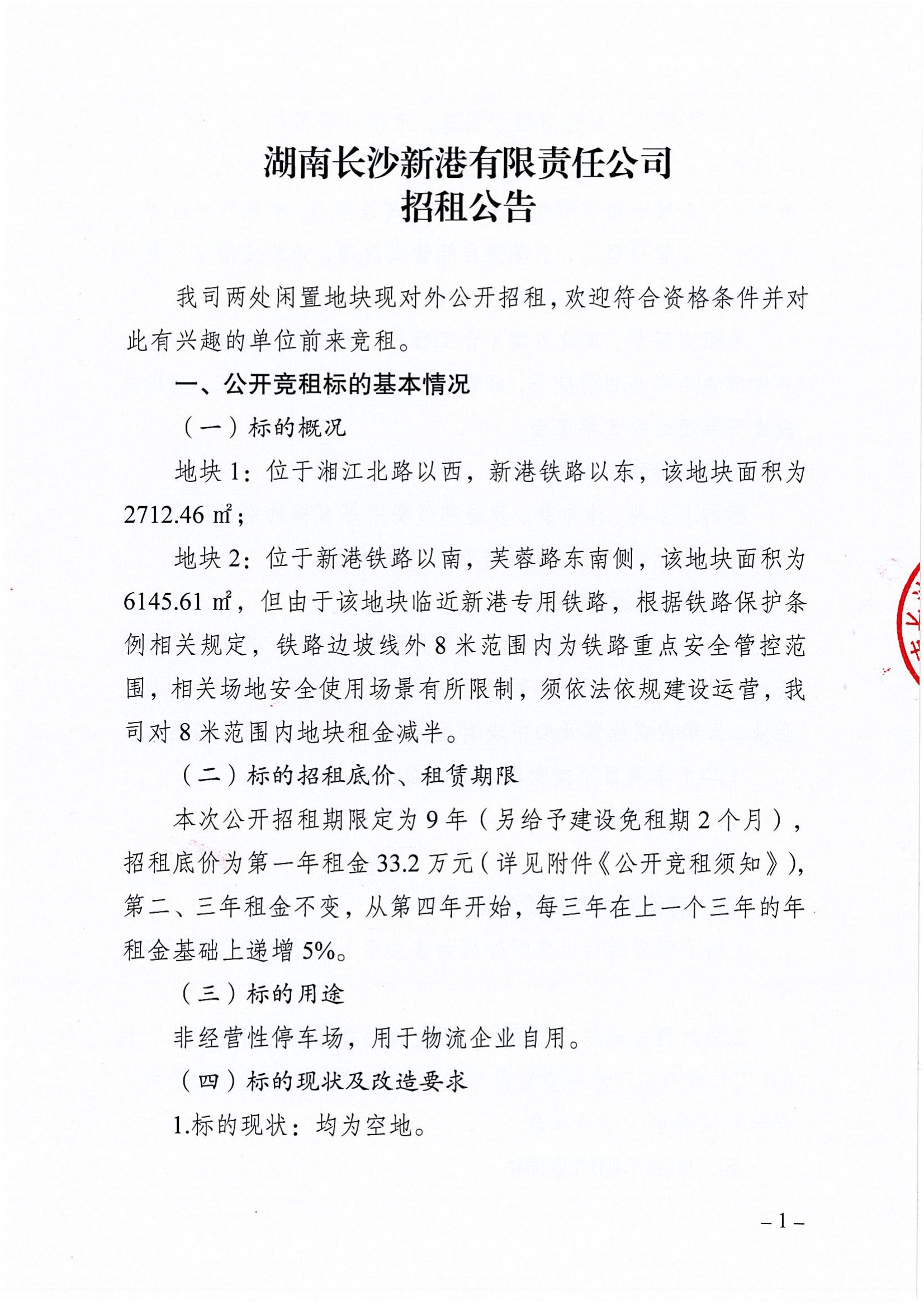 湖南長(cháng)沙新港有限責任公司招租公告