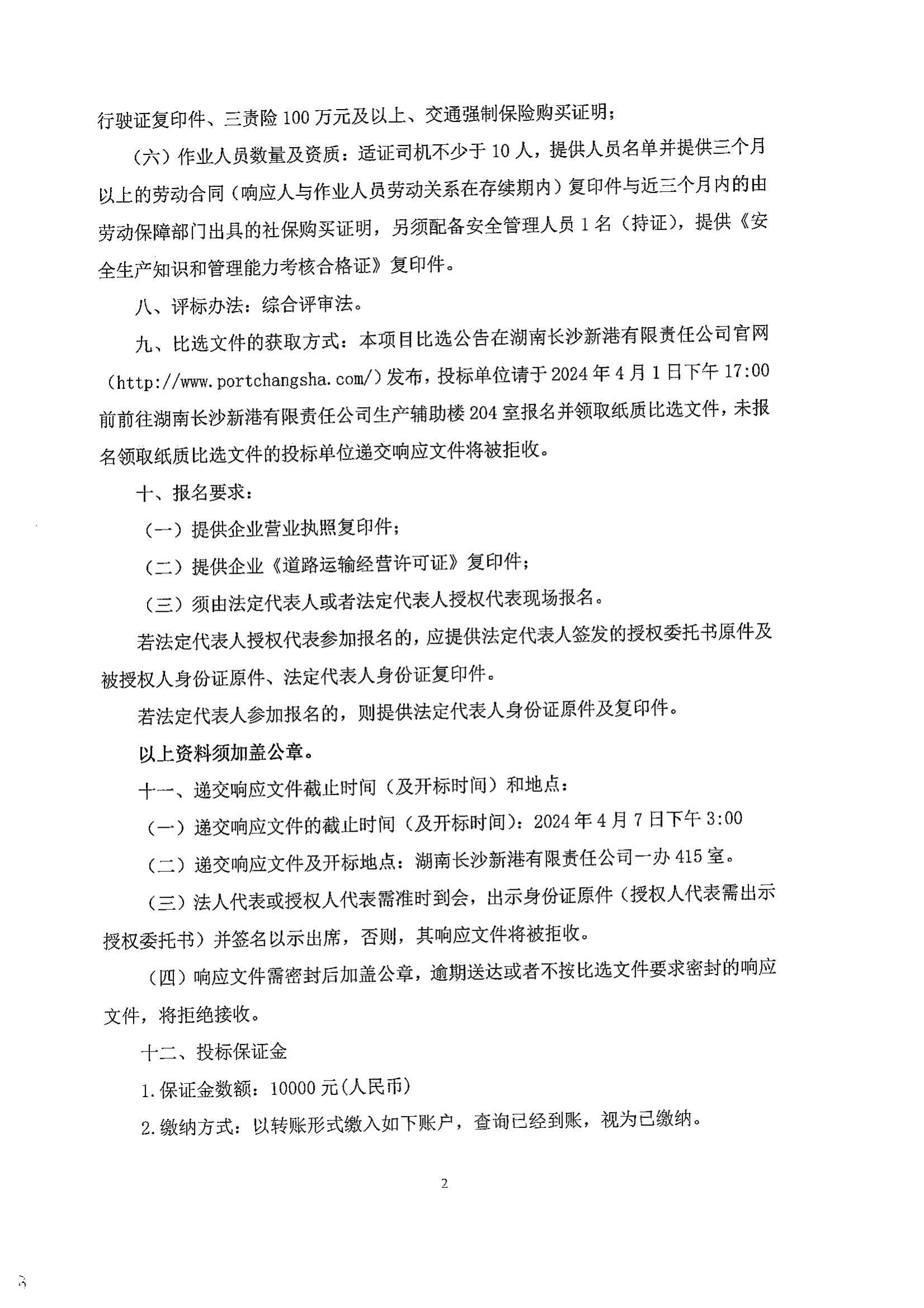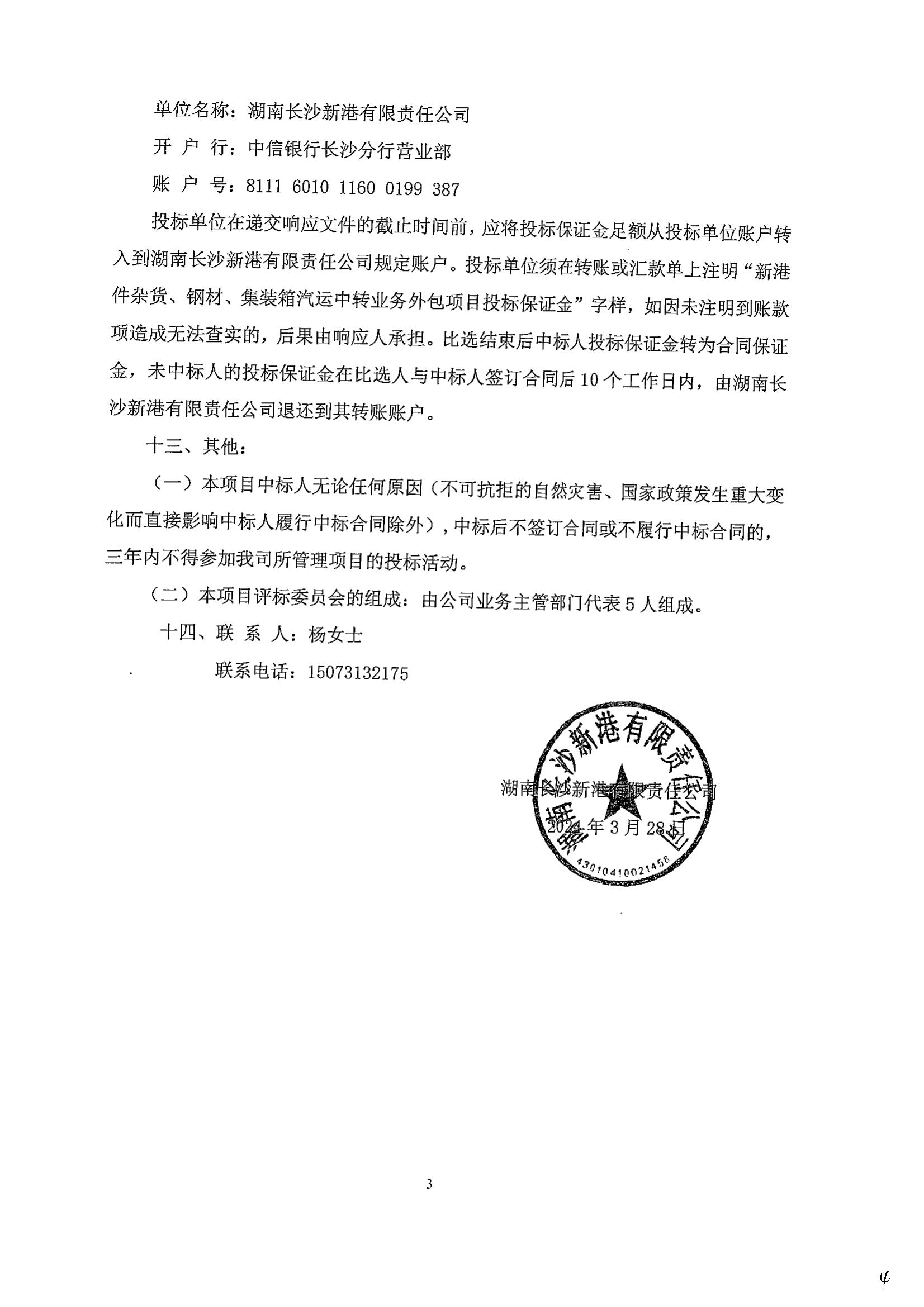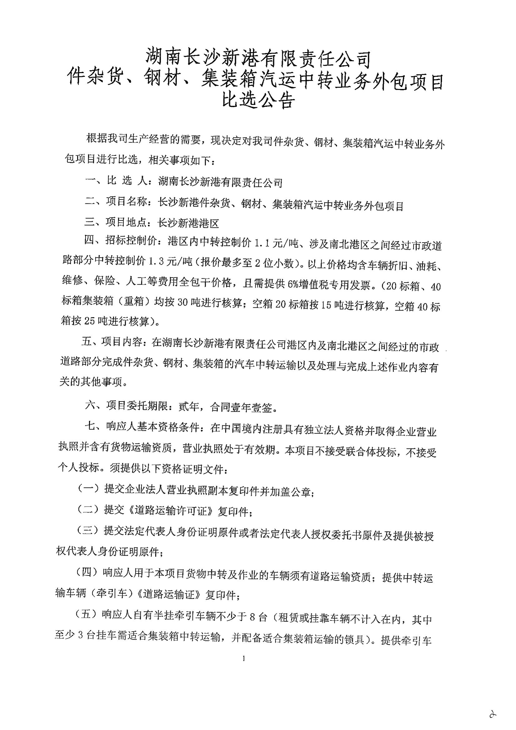 長(cháng)沙新港件雜貨、鋼材、集裝箱汽運中轉業(yè)務(wù)外包項目比選公告