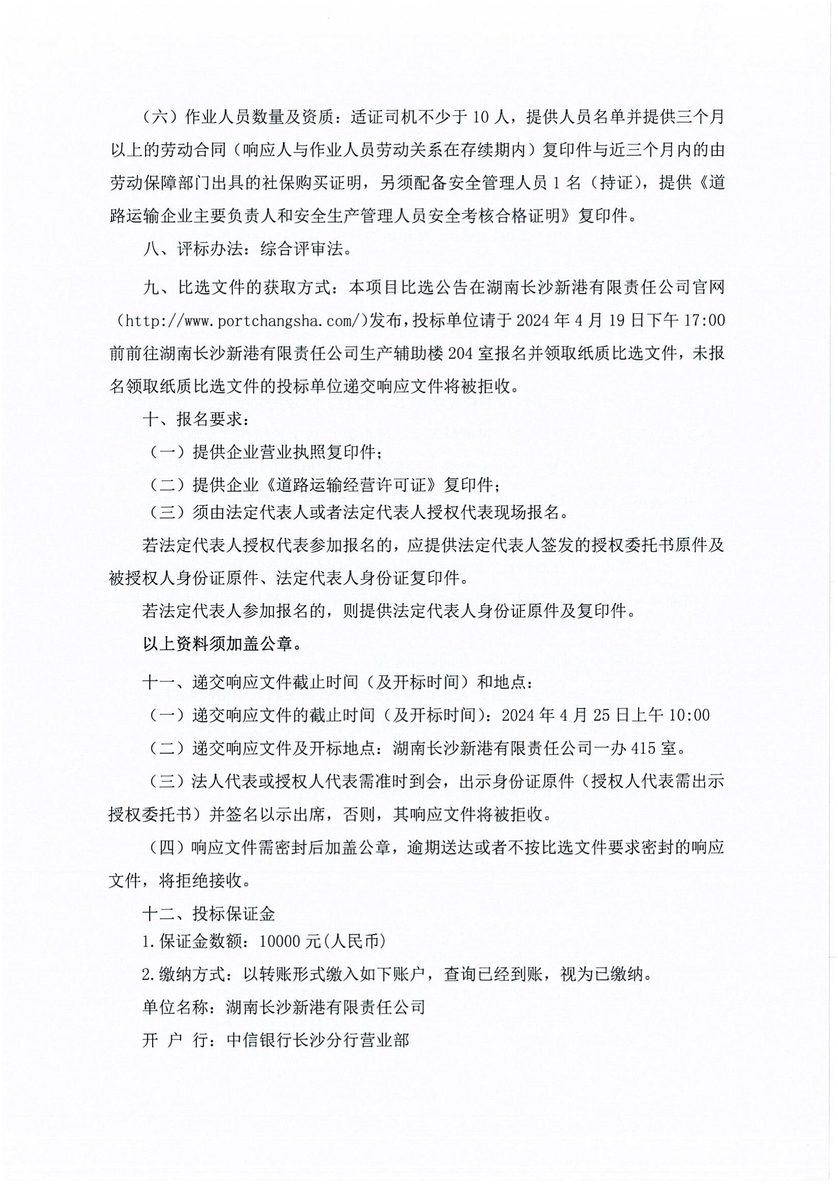 件雜貨、鋼材、集裝箱汽運中轉業(yè)務(wù)外包項目比選《比選公告(第二次)》